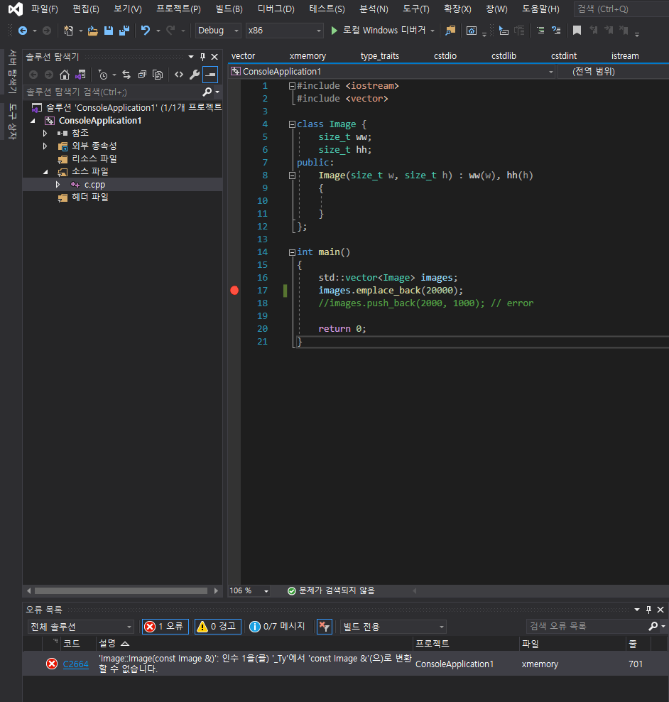 이것에서 emplace_back 과 push_back 의 차이점이 나타난다.