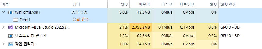 때문에 WinForm 창 크기를 조정 하거나, 타이틀 바를 잡고 마구 흔들어도