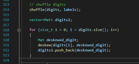 vector<Mat> digits; 의 경우는 분류를 위한 20 * 20 pixel 의 이미지를 담고 있고