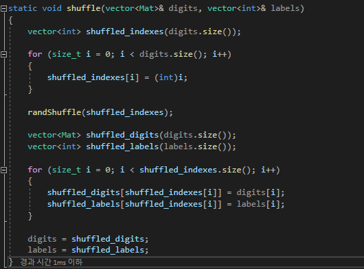 vector<int> labels; 의 경우는 분류의 '답' 인 int 형의 숫자를 담고 있는 것이다.