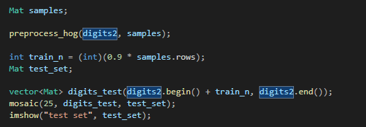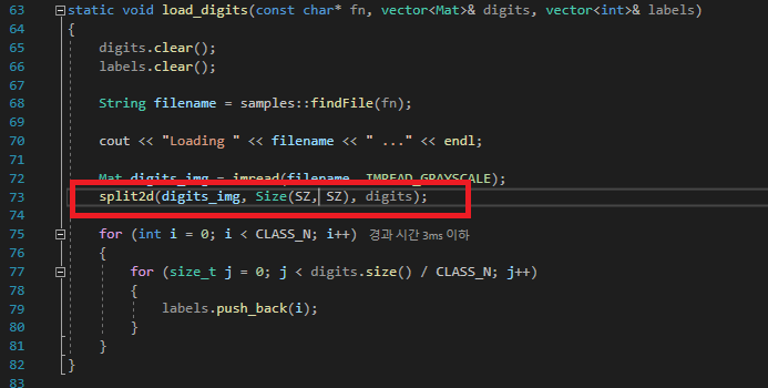 다음으로 digits2 Vector<MAT> 을 선언한 후