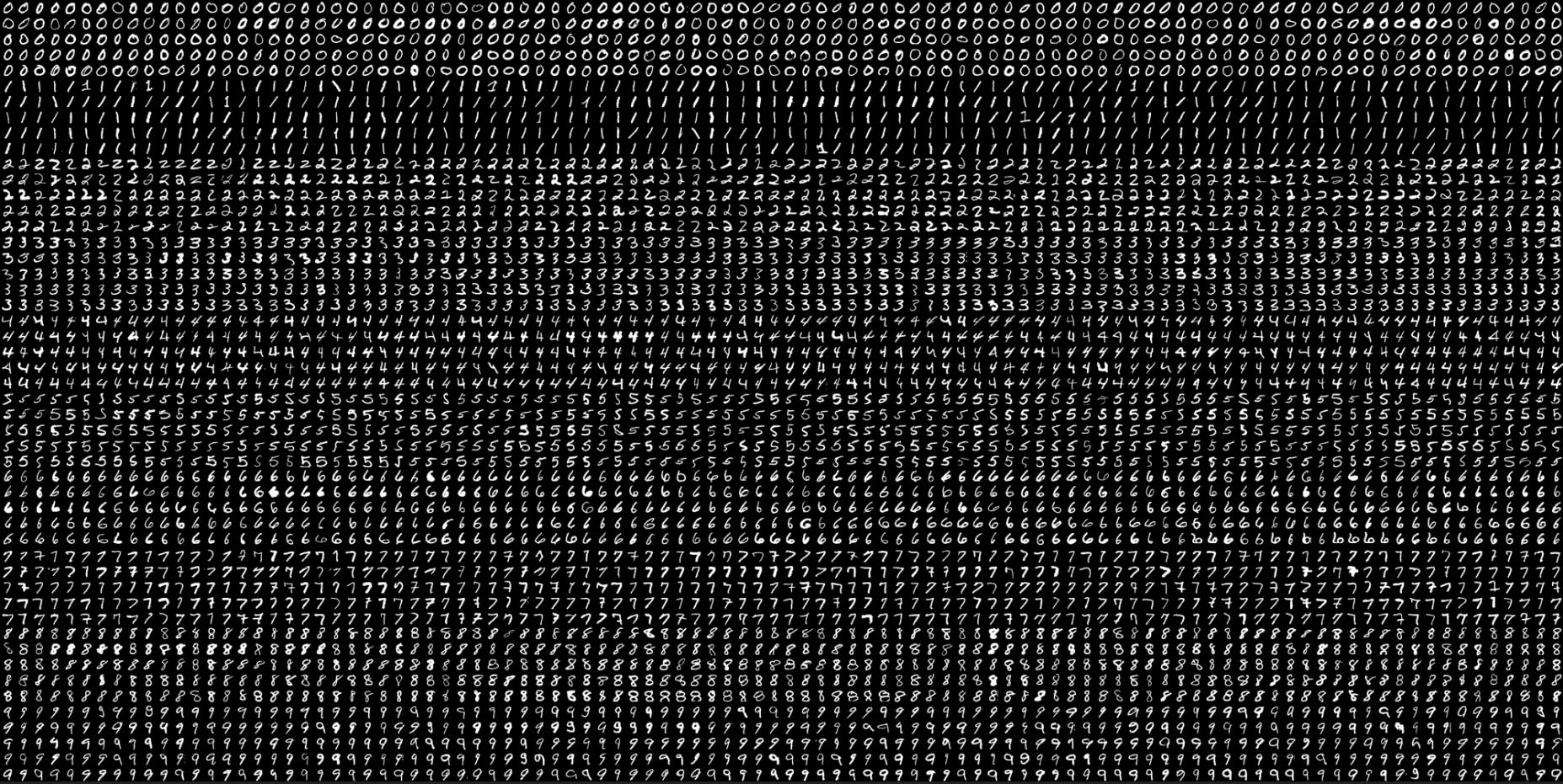가로 100, 세로 50 개의 숫자들로 총 5000 개의 숫자로 구성되어 있으며, 이를 각각의 숫자에 맞게 분류한다,