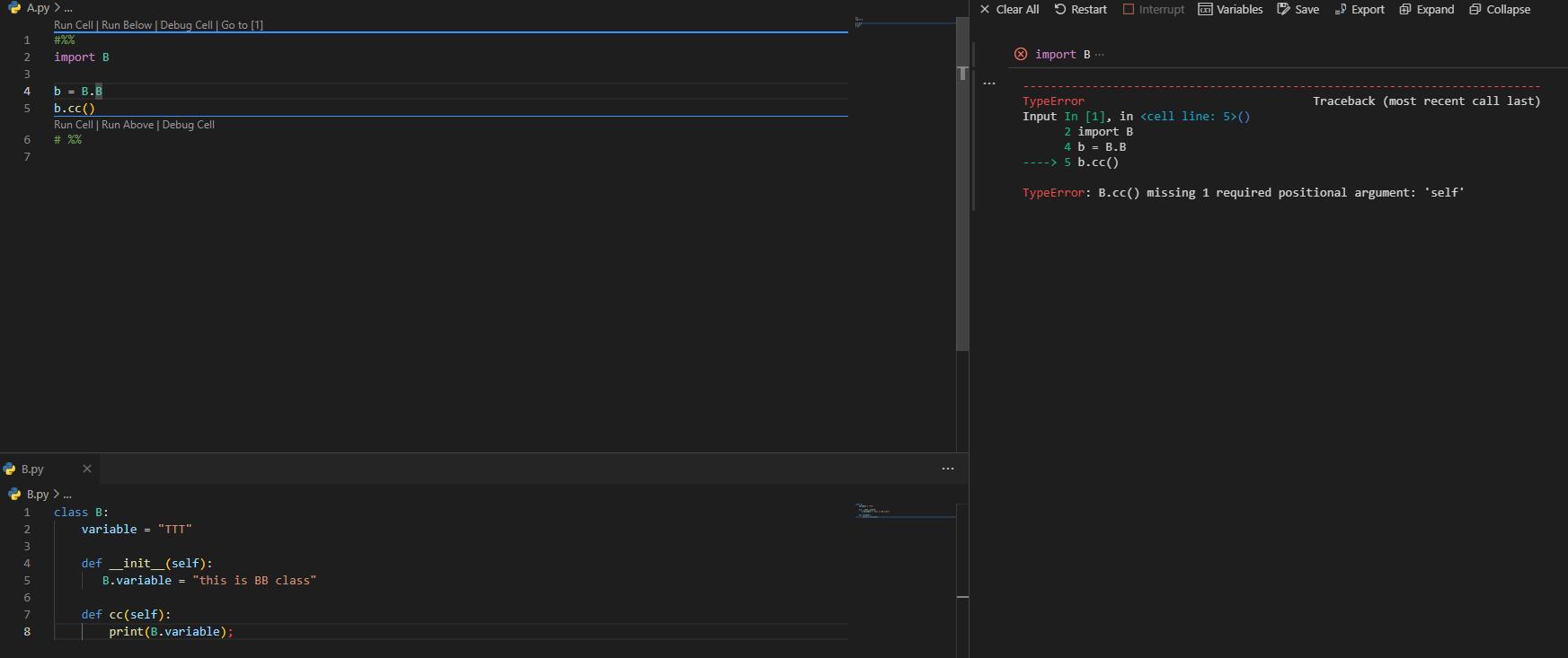TypeError: B.cc() missing 1 required positional argument: 'self'